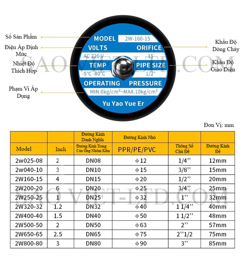 | Trạng thái van | Thường đóng (không điện thì đóng) |