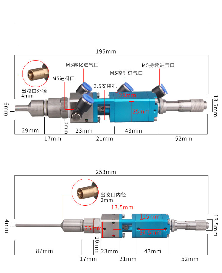 Kích thước đầu vào keo M5 đường kính bên trong 2MM