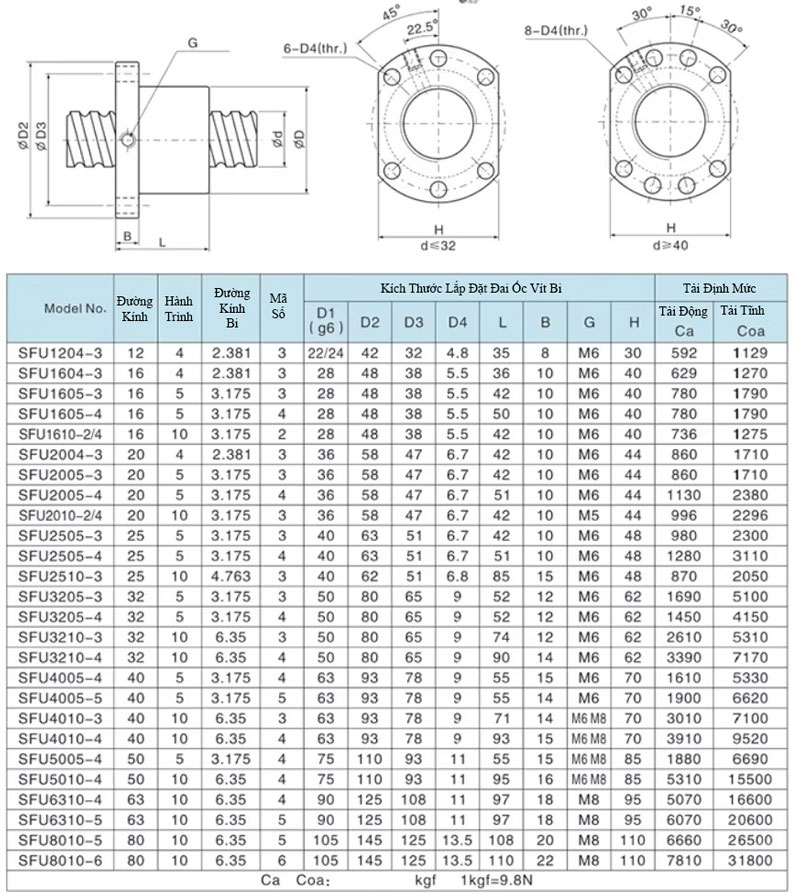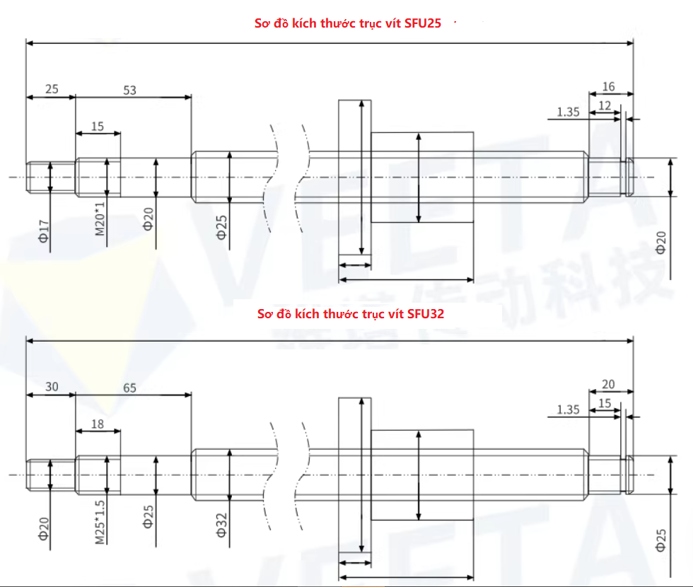 Trục vít me được gia công từ thép hợp kim chất lượng cao, trải qua quá trình tôi cứng và mài chính xác, đảm bảo độ cứng bề mặt cao, khả năng chịu tải tốt và độ bền cơ học lớn. Bề mặt ren được xử lý chính xác giúp các viên bi di chuyển trơn tru trong rãnh ren, tạo nên chuyển động mượt mà, ổn định và hạn chế rung động khi vận hành ở tốc độ cao.