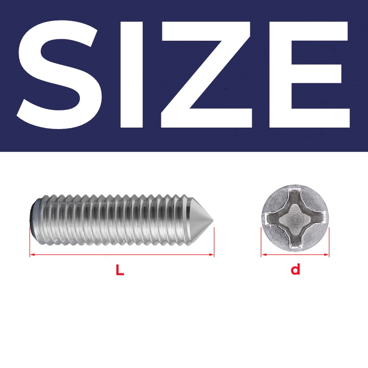 Bảng Thông Số Kỹ Thuật Vít Trí Đầu Nhọn M2 m2.5 m3 m4: