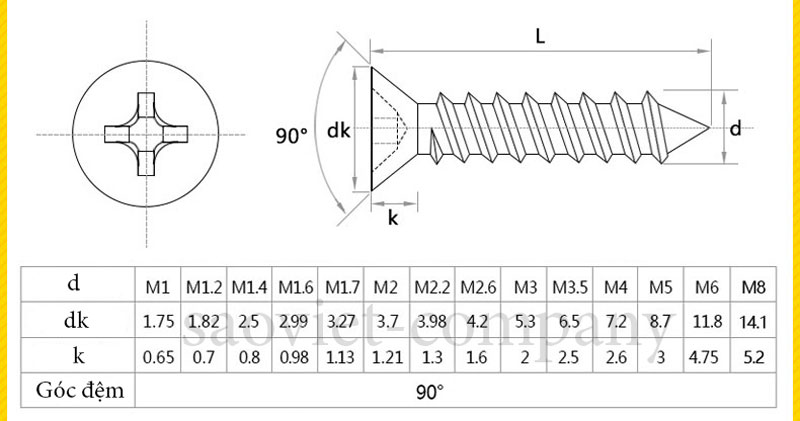 Dạng đầu phẳng (flat head hoặc countersunk) – khi vặn vít sẽ chìm xuống bề mặt vật liệu, tạo độ phẳng và thẩm mỹ cao.
