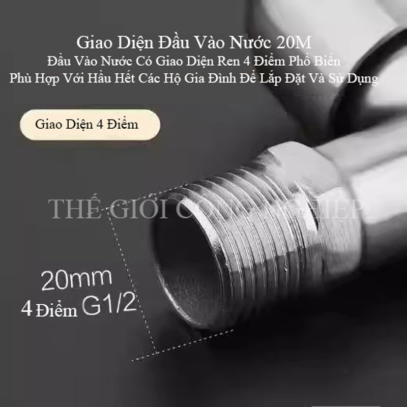 Đầu vào tiêu chuẩn phi 21mm (G1/2): Phù hợp với các đường ống nước phổ thông trong gia đình, dễ dàng lắp đặt vào nguồn cấp máy giặt, bồn nước, hoặc các thiết bị tăng áp.