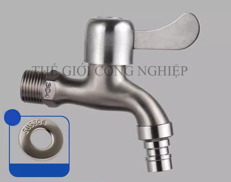 Vòi Nước Inox 304 Gạt Tay Xả Nhanh – Đầu Vào Phi 21mm (Dùng Cho Máy Giặt, Tăng Áp)