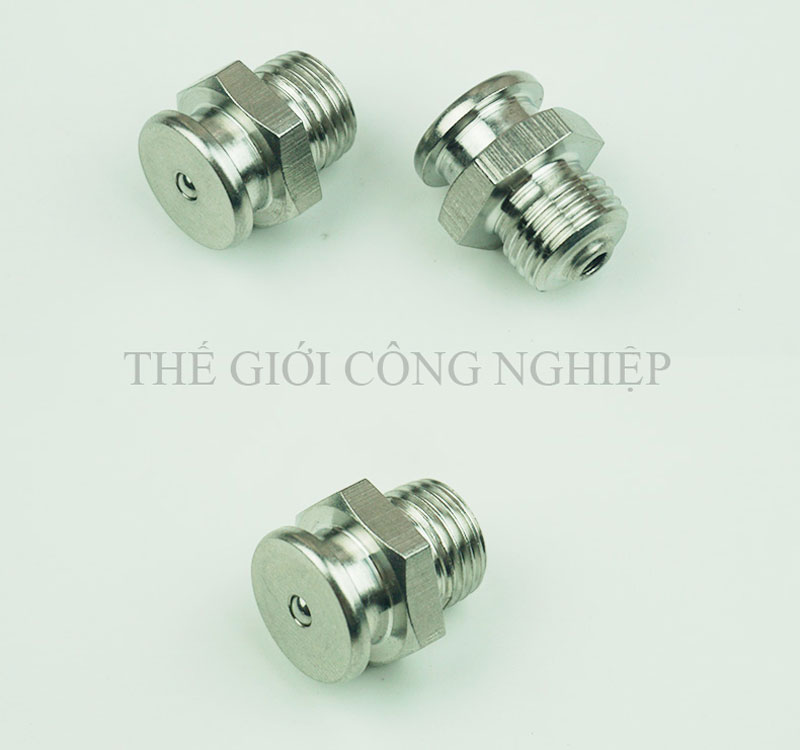 Chuẩn ren ngoài DIN 3404, dạng M10x1 hoặc M12x1 (hoặc theo yêu cầu), có thể kết nối trực tiếp với các loại súng bơm mỡ hoặc ống mềm bơm mỡ cao áp.