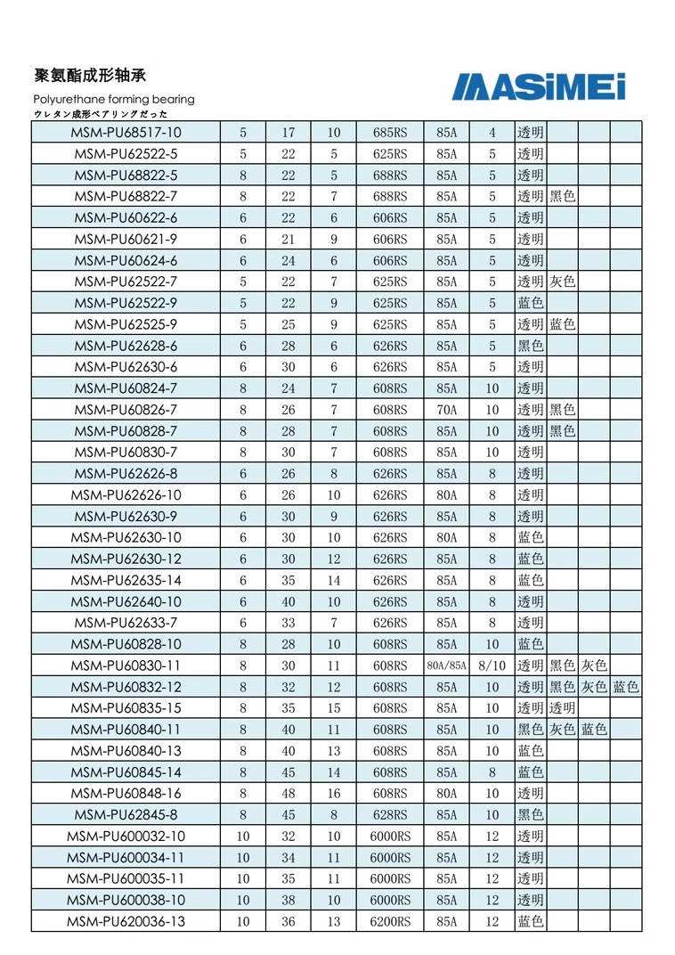 Bảng thông số kĩ thuật vòng bi bọc nhựa 620036-13