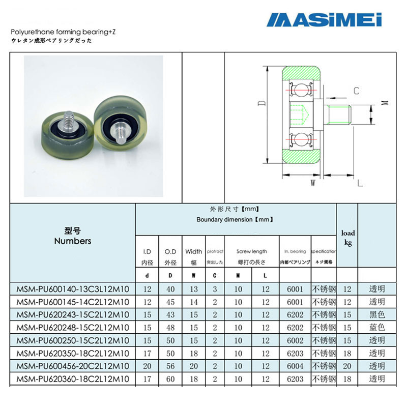 Bảng Thông Số Vòng Bi Bọc Nhựa PU Cọc Vít M10