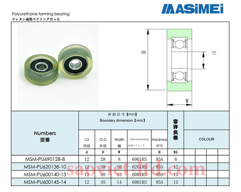 Bảng Thông Số Vòng Bi Bọc Nhựa PU Trục Phi 12