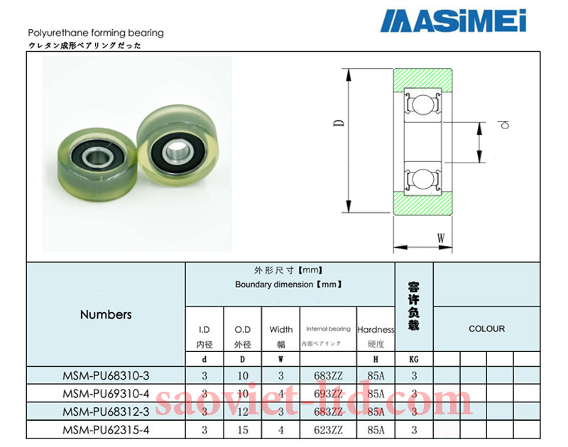 Bảng Thông Số Vòng Bi Bọc Nhựa PU Trục Phi 3