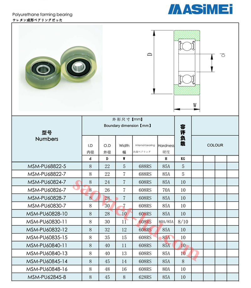 Bảng Thông Số Vòng Bi Bọc Nhựa PU Trục Phi 8