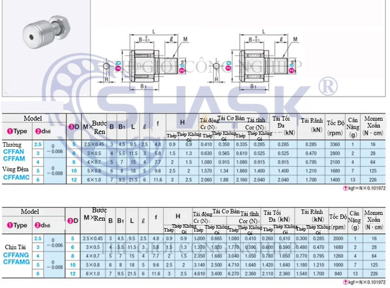 CFFANG: con lăn cam có phớt kín, chống bụi, chịu môi trường khắc nghiệt.