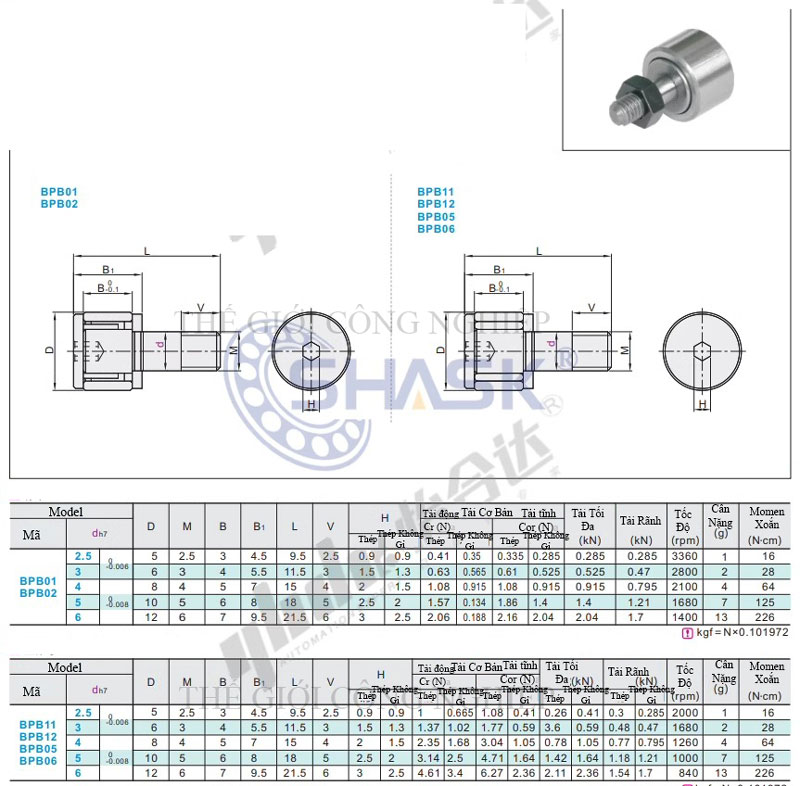 BPB05: đường kính trục nhỏ, phù hợp tải nhẹ.