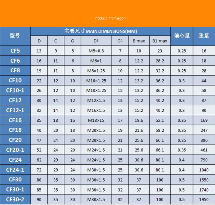 BẢNG THÔNG SỐ CON LĂN BU LÔNG IKO CF