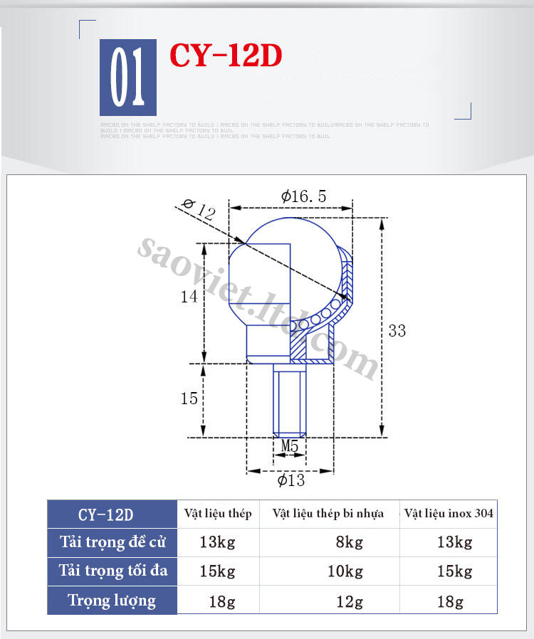 BẢNG THÔNG SỐ BI MẮT TRÂU DÒNG CY-D