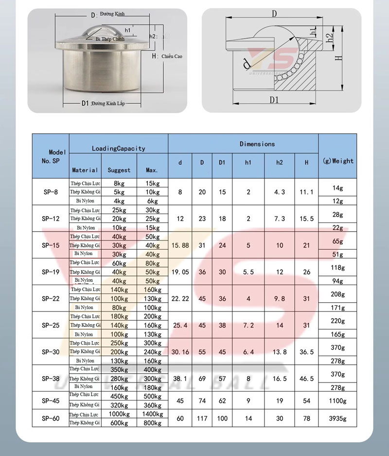 BẢNG THÔNG SỐ BI MẮT TRÂU DÒNG SP