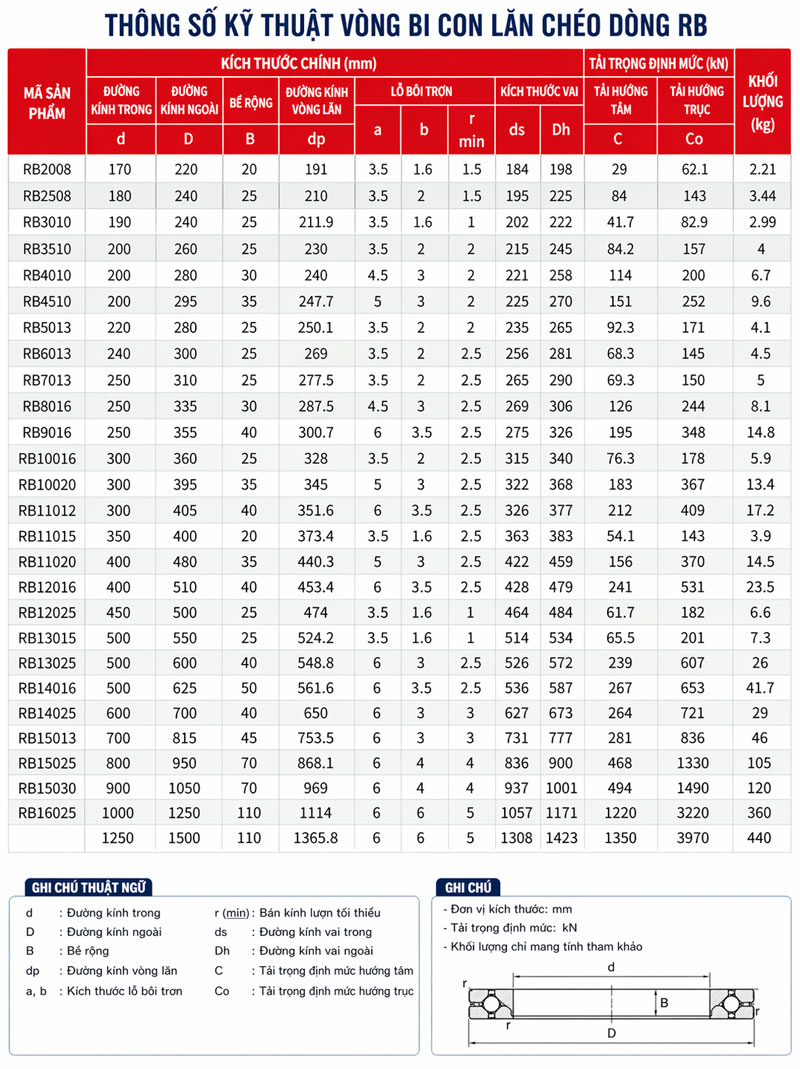 Mô tả chi tiết: Vòng Bi Con Lăn Chéo RB