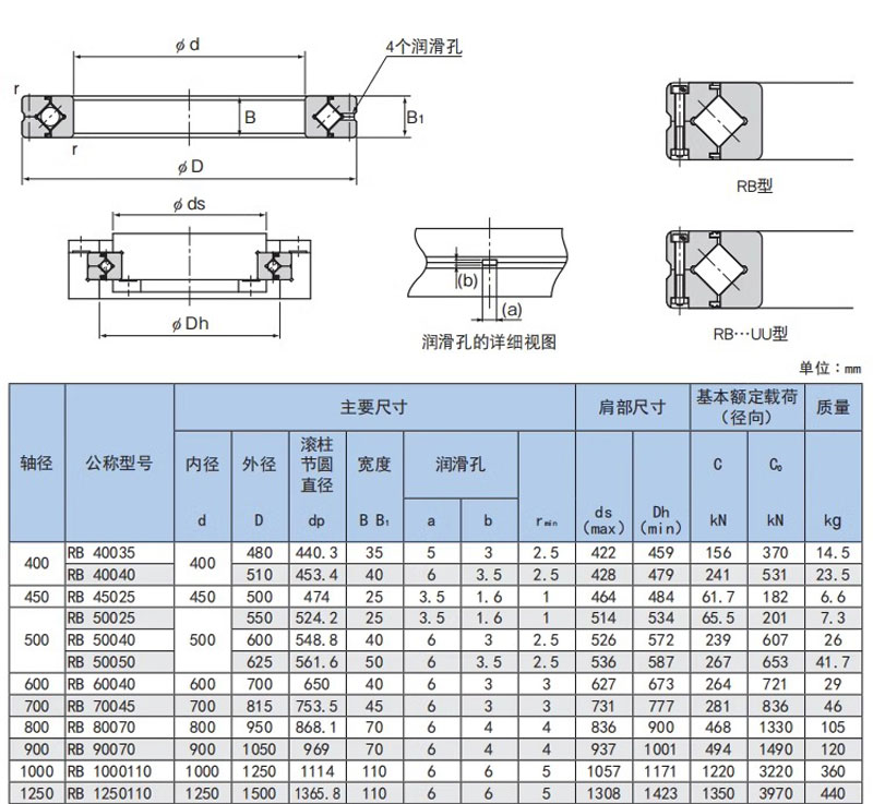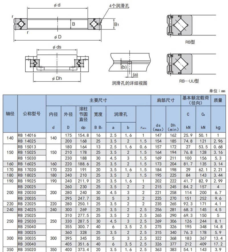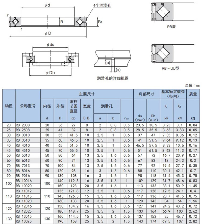 Bảng Thông Số Kỹ Thuật Vòng Bi Con Lăn Chữ Thập Chéo RB