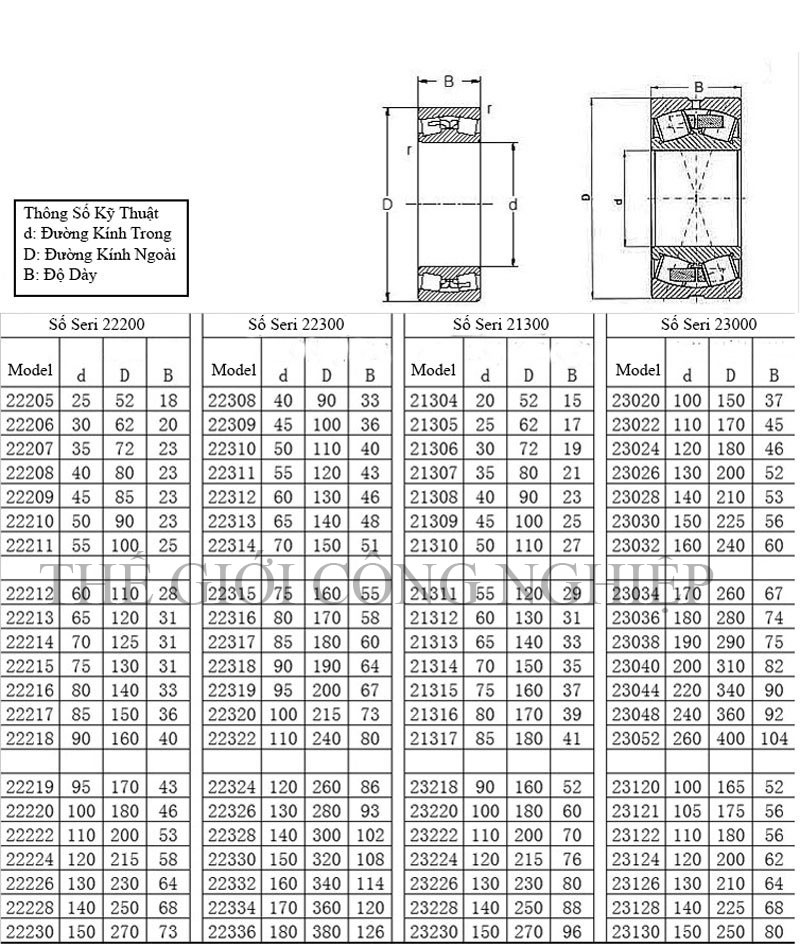 - Là vòng bi có kích thước lớn nhất trong nhóm mã này, phù hợp với các hệ thống công nghiệp nặng.