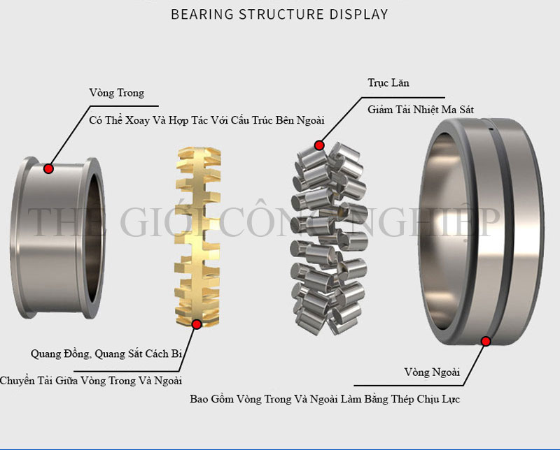- Lồng bi: Có thể là thép hoặc polyme tùy vào loại vòng bi cụ thể.