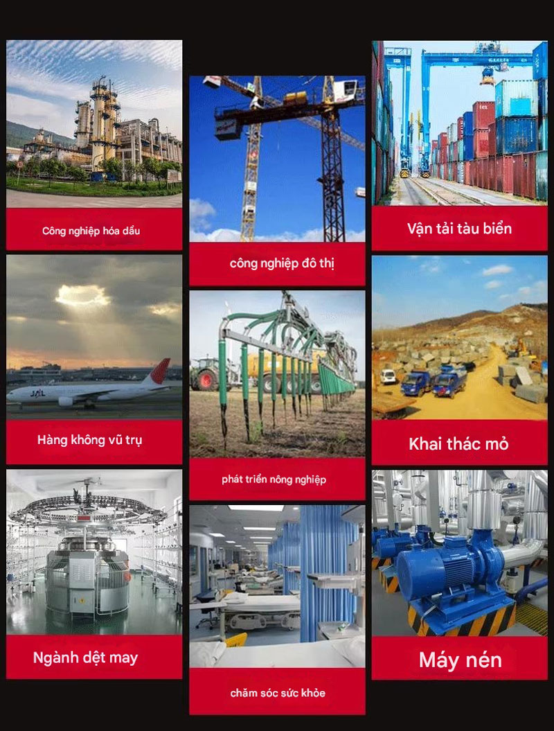 Xuất hiện trong các máy móc công nghiệp nặng, thiết bị cơ khí chính xác, hệ thống truyền động tự động, máy nén, robot công nghiệp và thiết bị chế tạo khuôn.