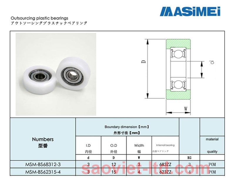 Bảng Thông Số Vòng Bi Nhựa BS Trục 3