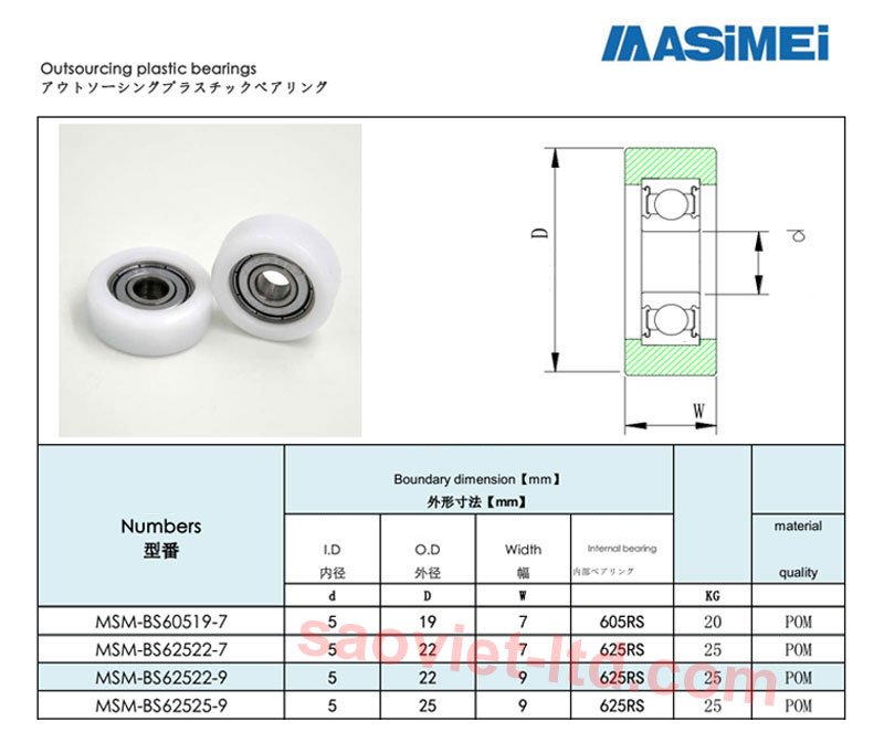 Bảng Thông Số Vòng Bi Nhựa BS Trục 5