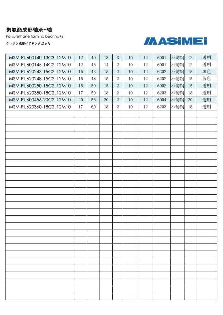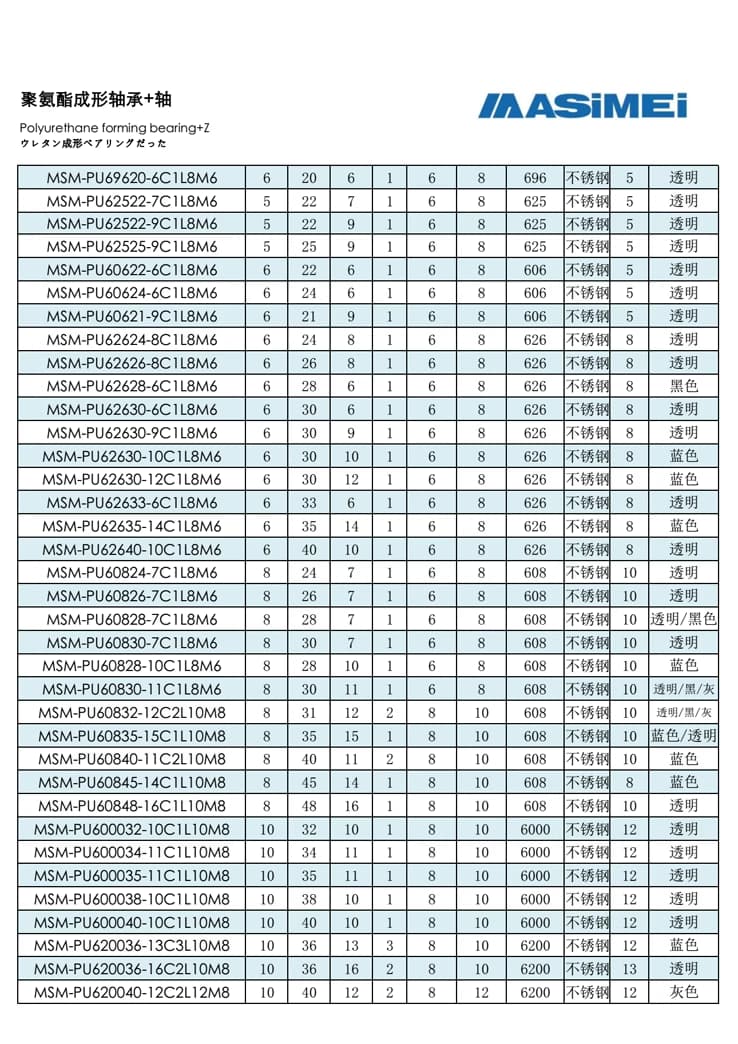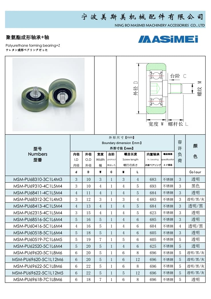 Bảng thông số vòng bi nhựa đen bulong liền thân PU62628-6C1L8M6