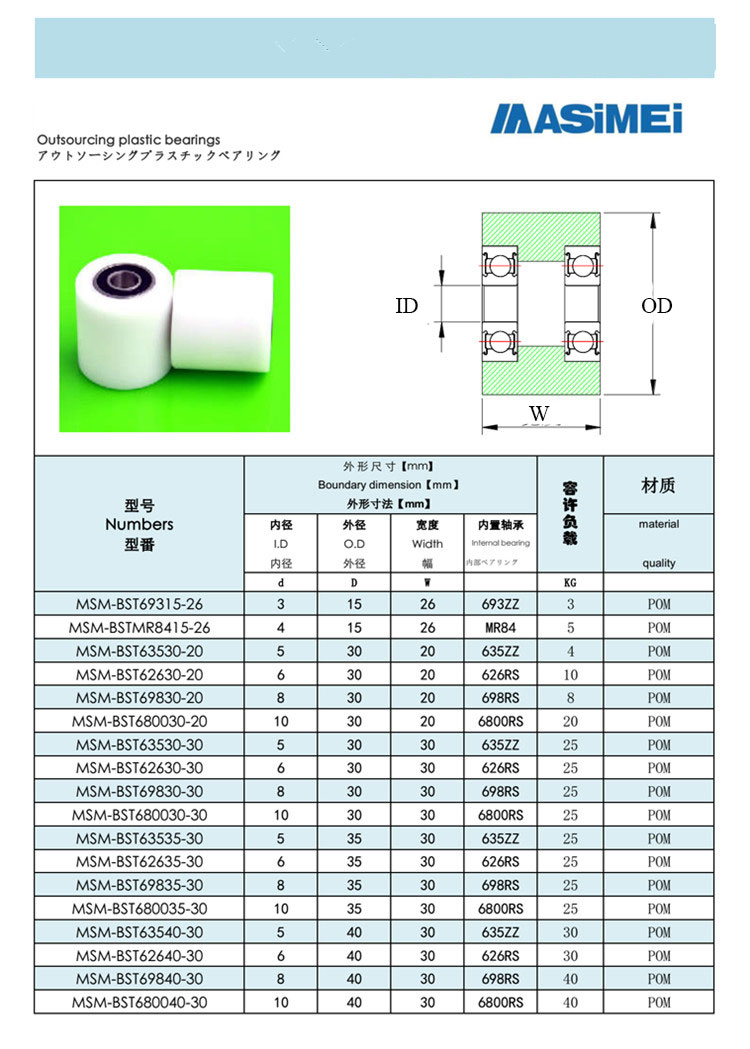 Bảng thông số vòng bi nhựa đôi chịu lực cao BST