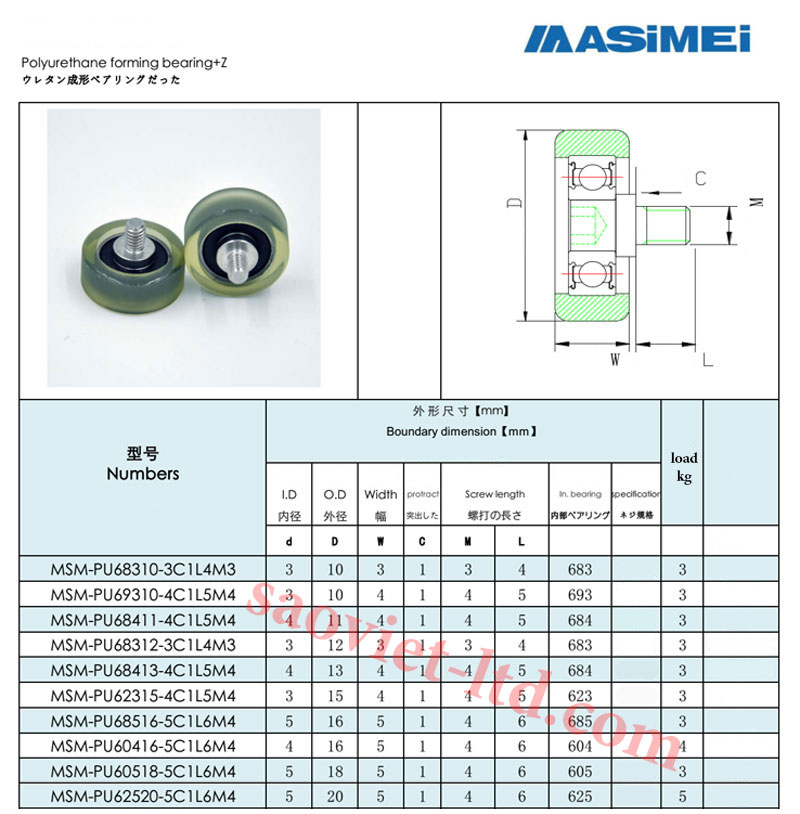 Bảng Thông Số Vòng Bi Bọc Nhựa PU Cọc Vít M3- M4