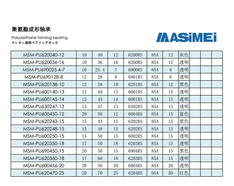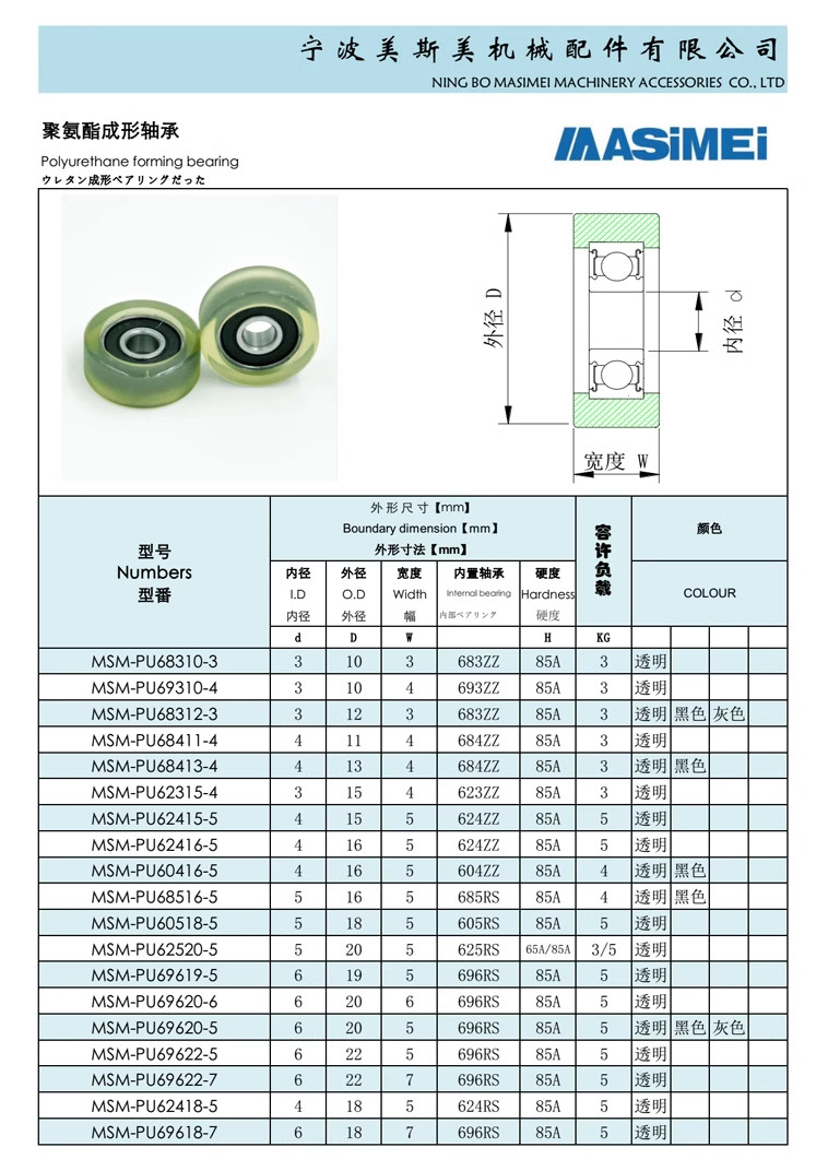 Bảng thông số kĩ thuật vòng bi bọc nhựa PU600250-15