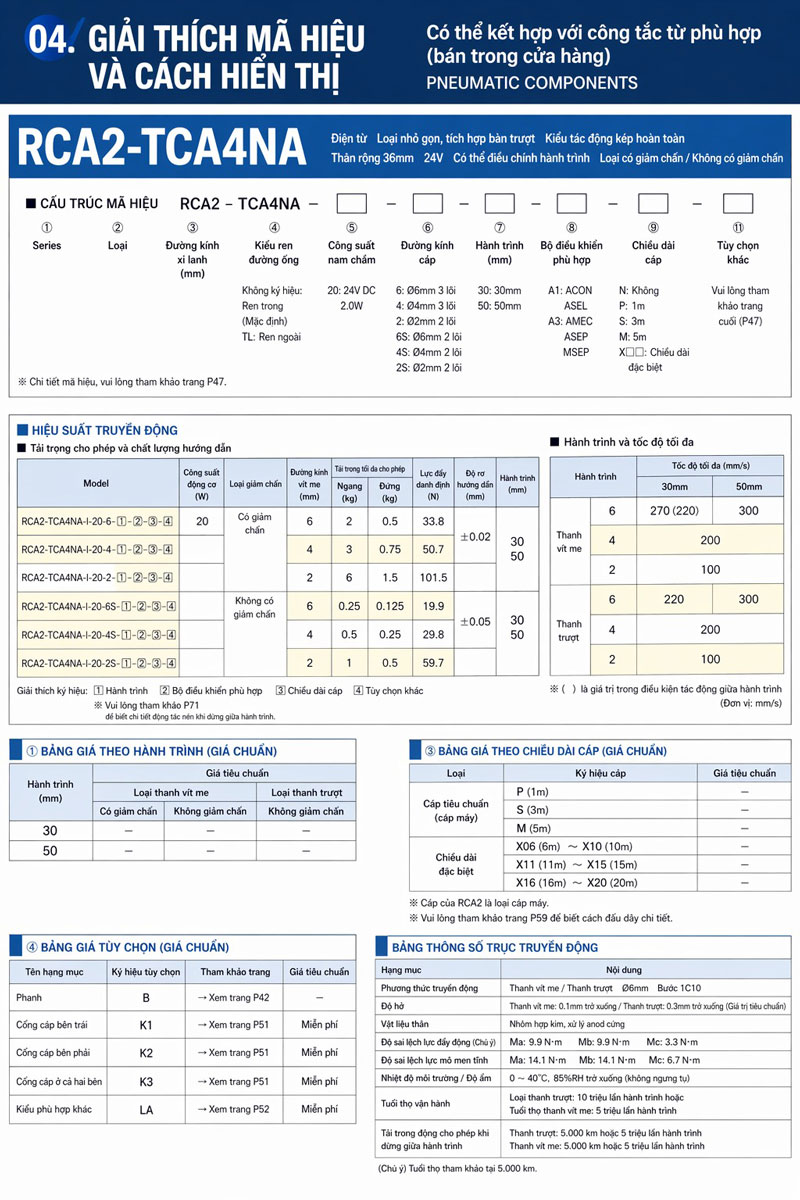 Mô tả chi tiết Xi Lanh Điện Mini RCA2-TCA3NA / RCA2-TCA4NA-I-20-6-30-A1-M