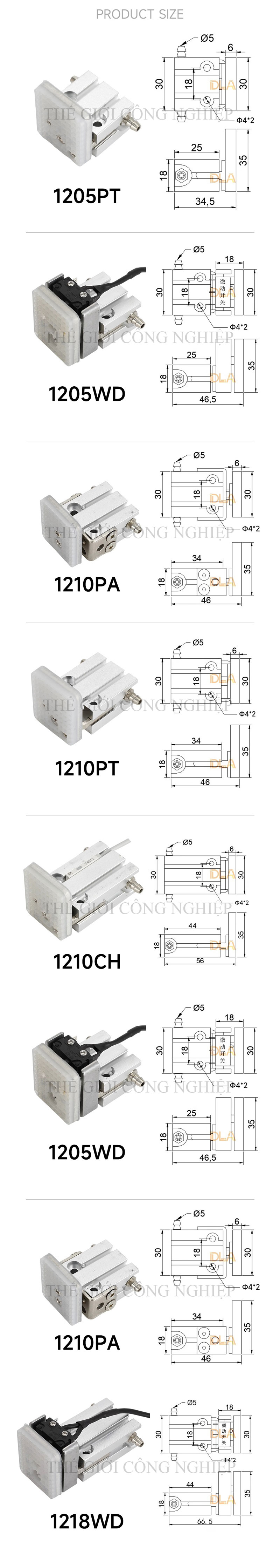 Mô tả chi tiết Xi Lanh Kẹp Khí Nén Cho Tay Gắp Robot 1210PT / 1205WD