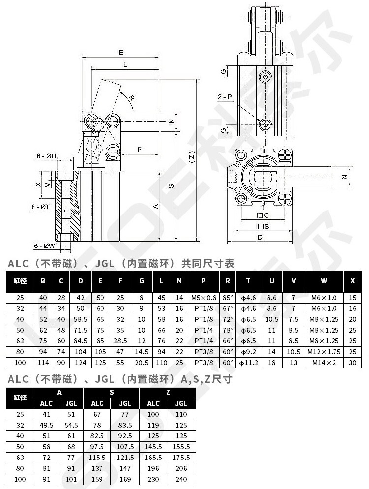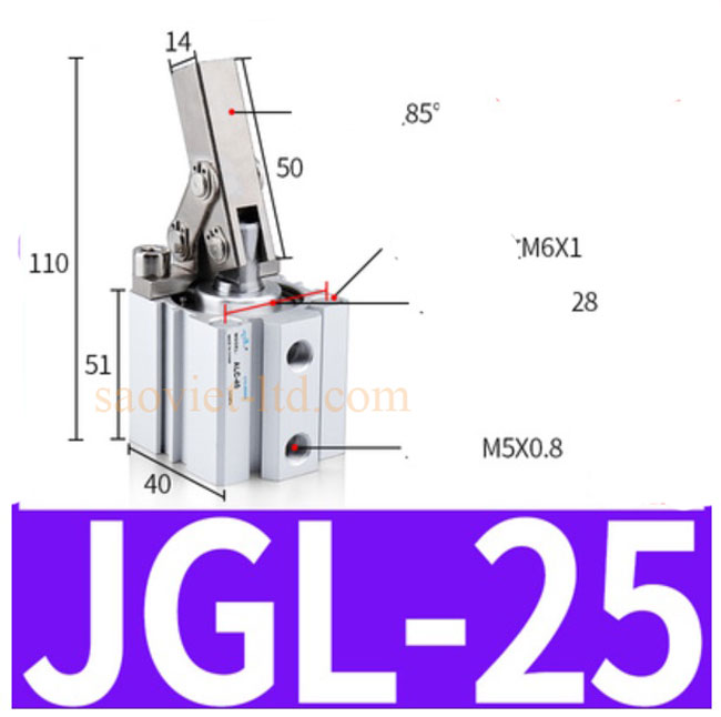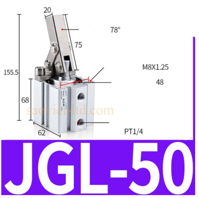 BẢNG THÔNG SỐ XI LANH KẸP KIỂU ĐÒN BẨY JGL25/JGL32/JGL40/JGL50/JGL63