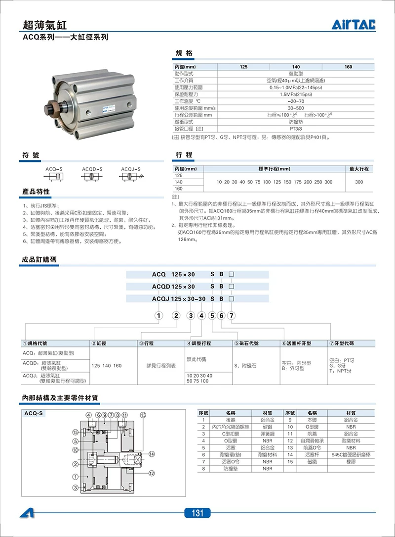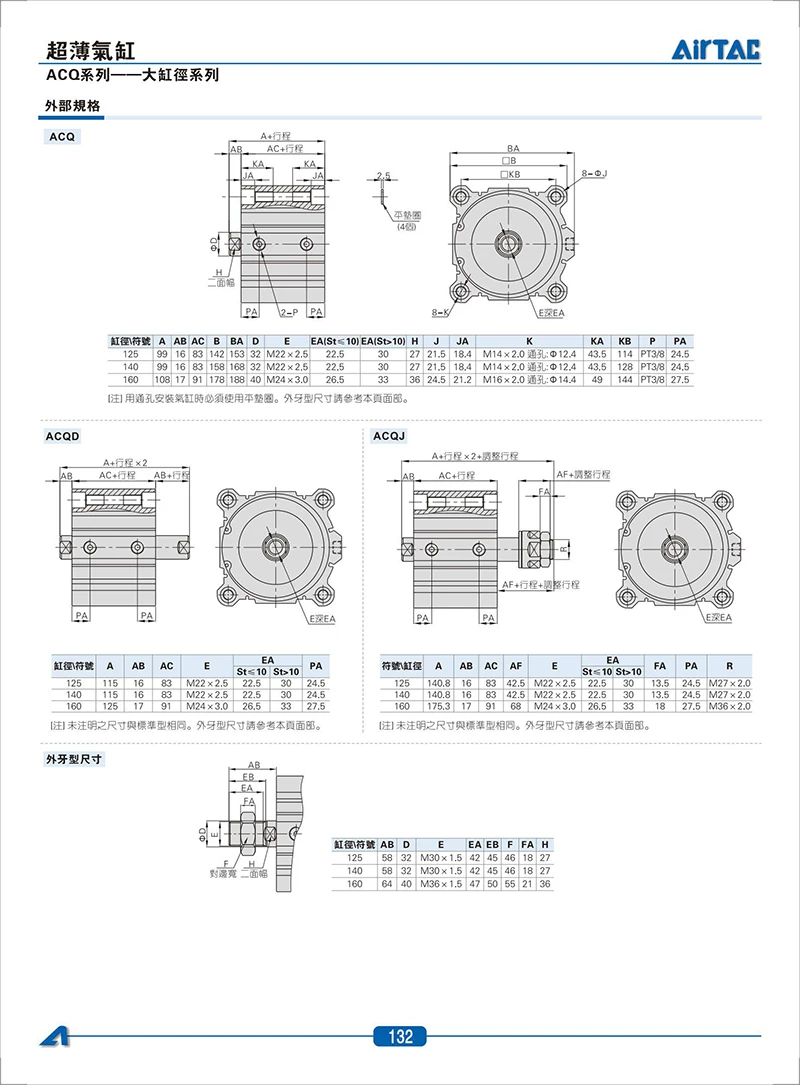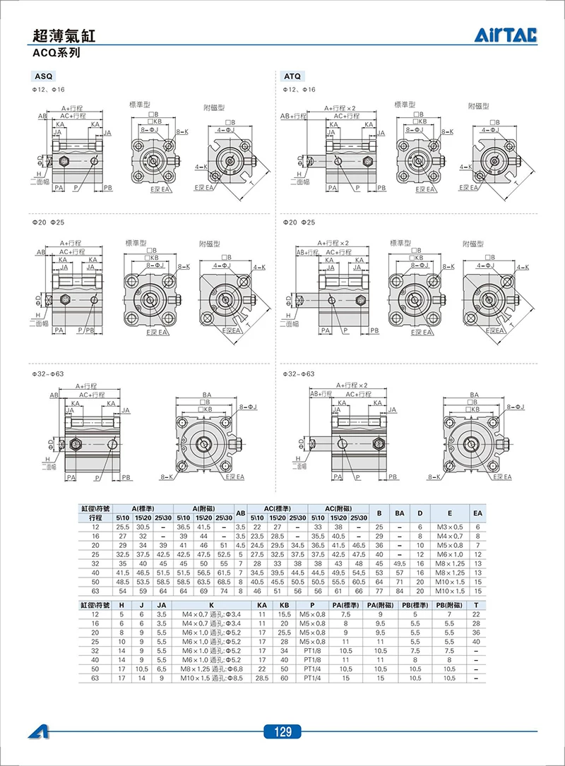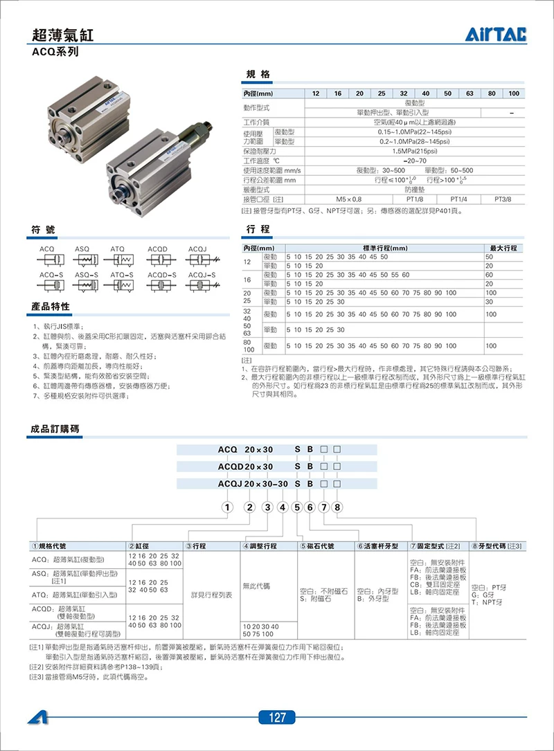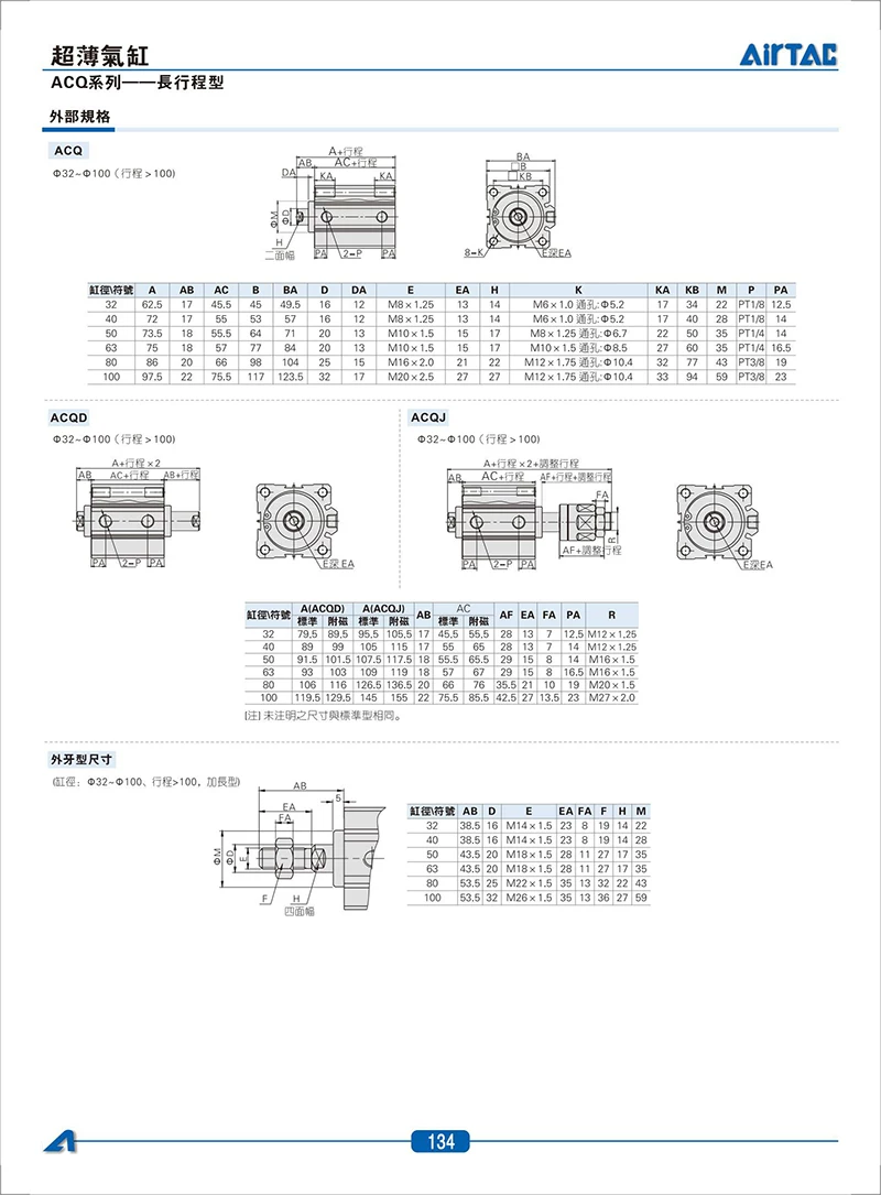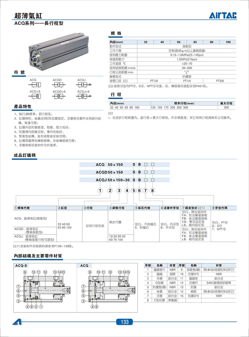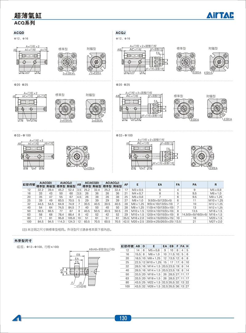 Xi Lanh Khí Nén AirTAC ACQ12/16/20/25/32/40/50/63/80*100X200SB