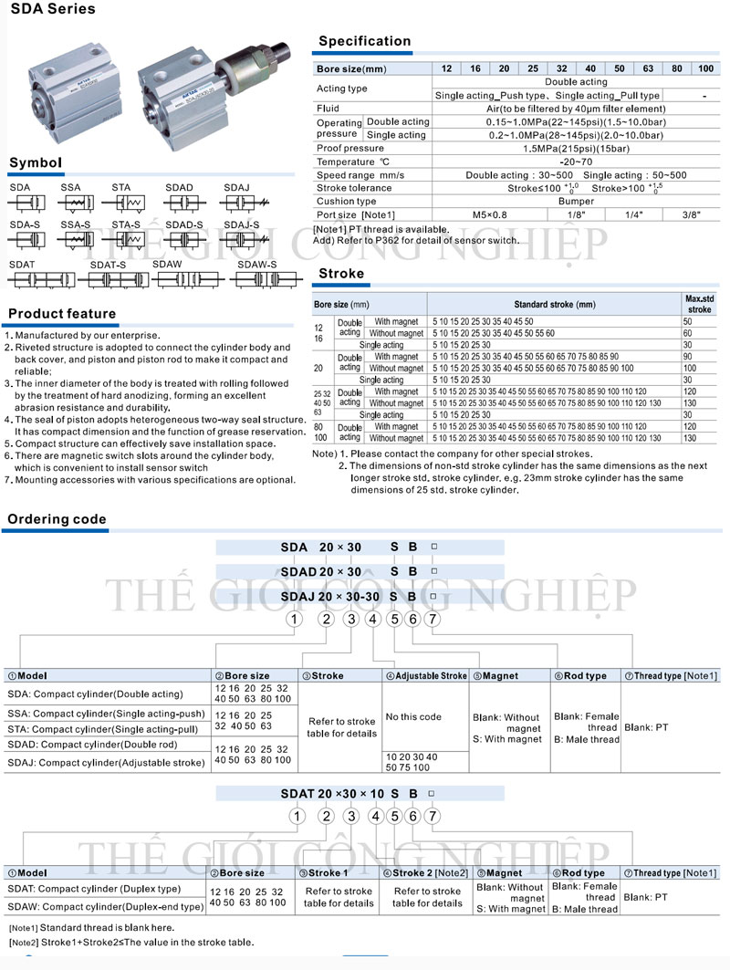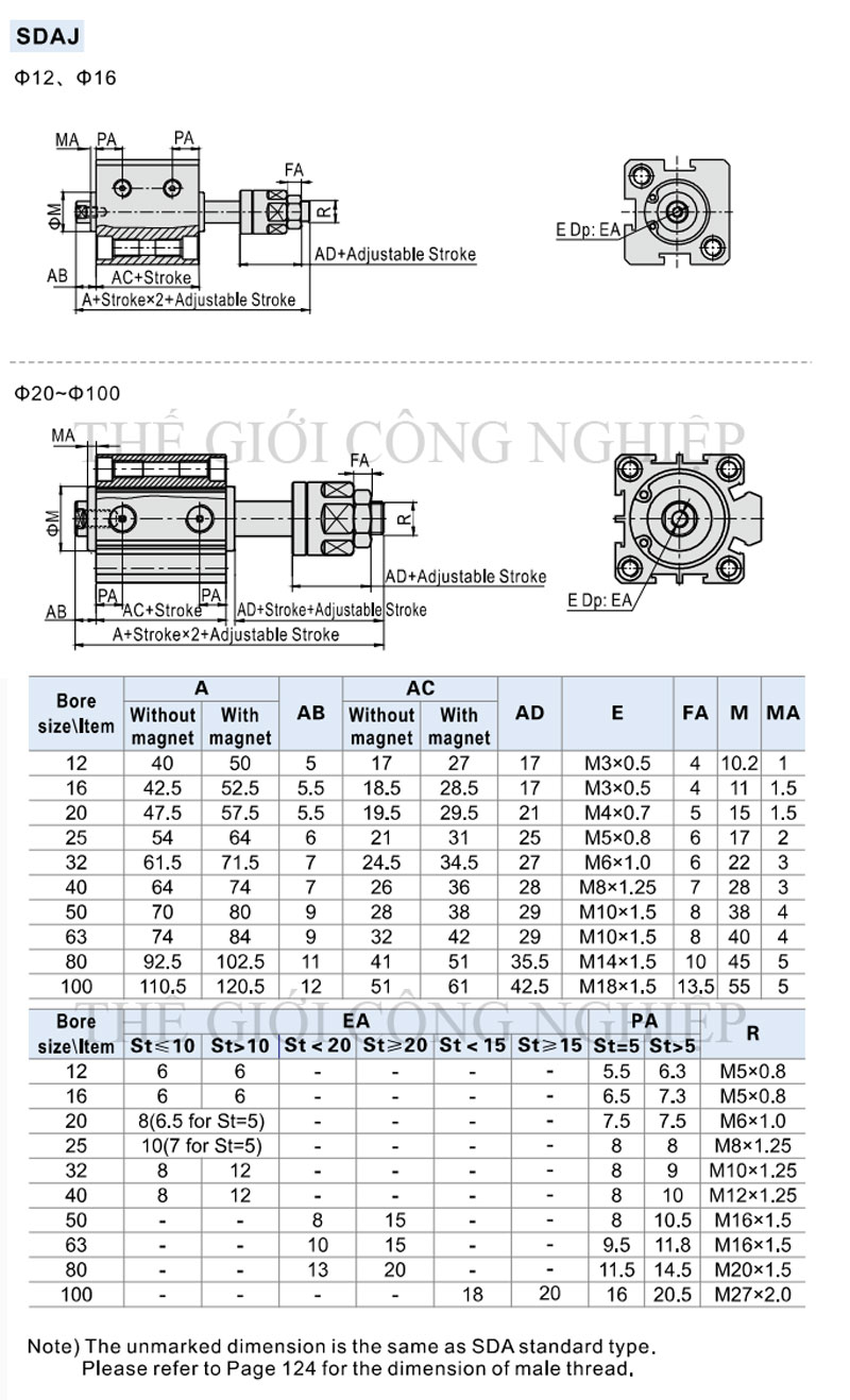 | Thông số | SDAJ12 | SDAJ16 | SDAJ20 | SDAJ25 |