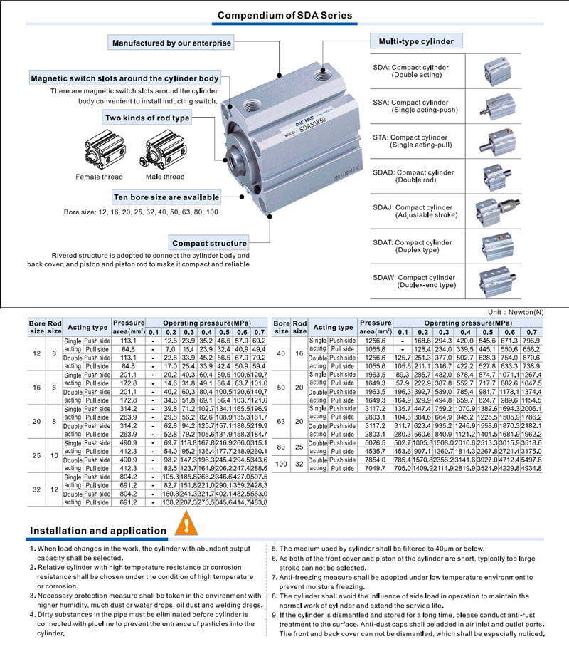 Nhờ thiết kế nhỏ gọn, vật liệu inox bền bỉ và khả năng vận hành ổn định, xi lanh khí nén inox 304 SDA được ứng dụng rộng rãi trong máy đóng gói, máy ép, máy lắp ráp tự động, hệ thống gắp – đặt sản phẩm, dây chuyền sản xuất điện tử, thiết bị chế biến thực phẩm và các cơ cấu truyền động trong ngành cơ khí – tự động hóa.