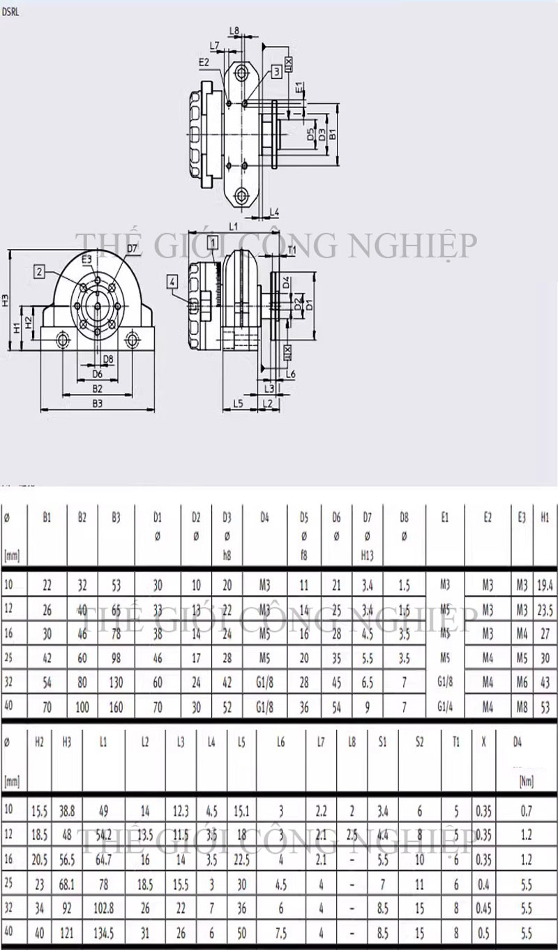 Mô tả chi tiết Xi Lanh Quay Góc 180° DSR / DSRL – Dòng Xi Lanh Khí Nén Xoay Chính Xác