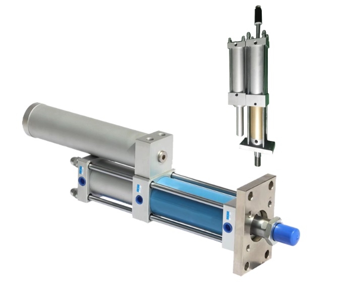 • Xi lanh hoạt động dựa trên nguyên lý chuyển đổi áp suất khí nén thành lực cơ học kết hợp với cơ chế tăng áp để tạo ra lực đẩy mạnh hơn so với xi lanh khí thông thường.